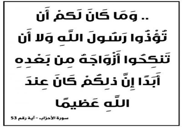 وتبيِّن الروايات أنَّ النبي عاش مع السيدة عائشة تسع سنين ومات عنها ولها من العمر ثماني عشر سنة، وهذا يعني أنها تزوجت في الوقت الذي لم تكن بحاجة فيه للزواج وعندما أصبحت بحاجة للزوج والزواج أضحت بلا زوج، لأنه يحظر على أمهات المؤمنين لقوله تعالى” وَمَا كَانَ لَكُمْ أَن تُؤْذُوا رَسُولَ اللَّهِ وَلَا أَن تَنكِحُوا أَزْوَاجَهُ مِن بَعْدِهِ أَبَدًا”.