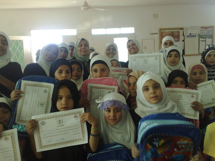 قام منتدى الوسطية بإطلاق حملة لتوزيع المعونات العينية على طلبة المدارس في بداية العام الدراسي وفي إطار هذه الحملة قامت لجنة المرأة يوم الخميس 16-9-2010 بتوزيع حقائب على طلاب وطالبات قرية مرصع في محافظة جرش من حفظة القران الكريم مما ساهم بإدخال البهجة والفرح في قلوب الطلاب وعزز دافعيتهم لمزيد من الاجتهاد والعمل البناء لخدمة بلدهم والنهوض بمجتمعهم.