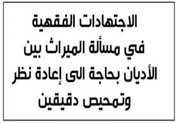 باعتقادي أن الاجتهادات الفقهية في هذه المسالة بحاجة الى إعادة نظر وتمحيص دقيقين، خصوصا أن الفقهاء جعلوا بعض الاحاديث تُهيمن على صريح القرآن ووضوح مراده، وهذه دعوة ايضا لعلماء الشريعة لمراجعة سند الحديث الوحيد في هذه المسألة الذي تم الاعتماد عليه،واعادة دراسته وتخريجه والتفتيش عن رجاله بطريقة متأنية مرة اخرى حتى وإن كان الحديث في الصحاح فهذا جهد بشري، وذلك لاعتقادي بخطورة وعدم موضوعية وعدم إنسانية الحكم الشرعي الذي بني عليه، والذي فيه حرمان لانسان من حق في كسب مالي بسبب عقيدته ودينه!وفضلا عن اعادة دراسة المادة التي تنص على هذا الحرمان في قانون الاحوال الشخصية الاردني.